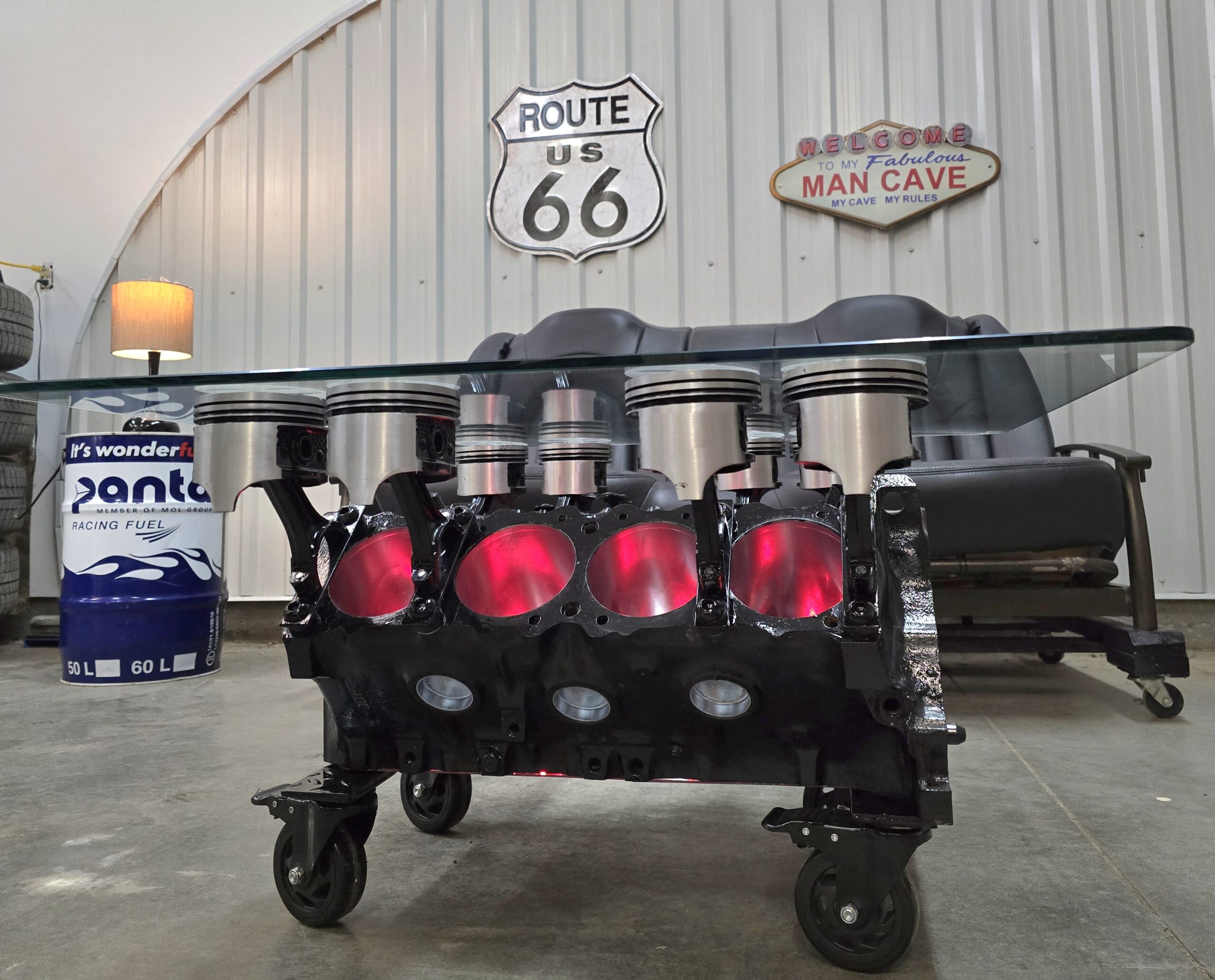 – Real muscle car Mopar 440 big block (impressive and massive) with equally massive and impressive 528 polished aluminium Hemi pistons and after market polished alu conn rods